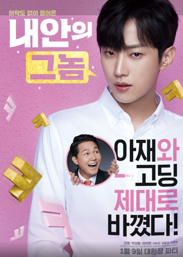김동현(진영) - 극 중 고등학생 김동현 역을 맡은 진영은, 처음에는 소심하고 내성적인 성격을 보여주지만, 몸이 바뀐 후 장판수의 카리스마가 덧입혀지면서 전혀 다른 모습으로 변신합니다. 김동현은 단순한 고등학생 캐릭터가 아닙니다. 몸이 바뀐 뒤 어른의 역할을 수행하면서 변화와 성장을 경험하는 입체적인 존재입니다. 진영이 연기한 김동현은 아버지를 잃은 상처와 현실의 부조리에 예민하게 반응하는 감수성을 가진 캐릭터 입니다. 진영은 이중적인 성격 연기를 안정적으로 소화하며 영화의 중심축을 이룹니다.