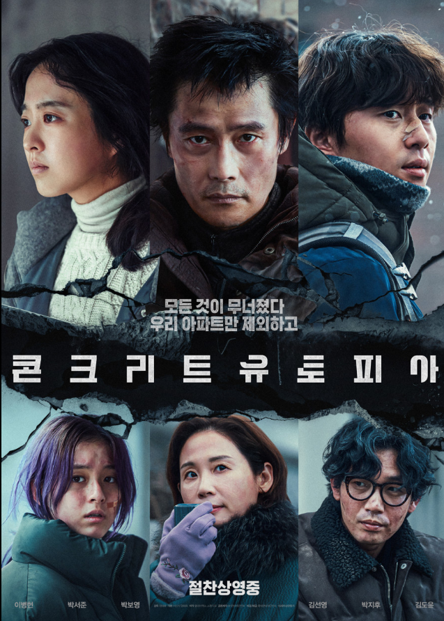 '콘크리트유토피아'는 단순한 재난영화의 문법을 따르지 않습니다. 여기에는 할리우드식의 스펙터클한 구조물 붕괴나 히어로가 없습니다. 오히려 정적인 공간인 아파트라는 배경 속에서 사람 간의 갈등과 권력 구조, 그리고 공동체의 붕괴를 조용히, 그러나 강렬하게 보여줍니다. 이 영화의 제목은 매우 상징적입니다. '콘크리트'는 무너질 듯 견고한 도시 문명, '유토피아'는 모두가 꿈꾸는 이상사회입니다. 그러나 영화 속에서는 이 두 단어가 모순적으로 충돌합니다. 견고한 공간 안에서 인간성은 점차 파괴되고, 이상은 무너져갑니다. 이는 한국 사회의 현실과도 맞닿아 있으며, 재난이 닥쳤을 때 드러나는 공동체의 민낯을 은유적으로 표현합니다.